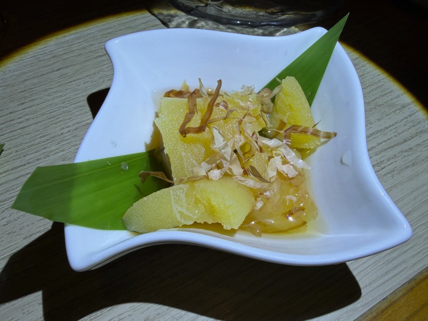 「あじいち」さんに18時で予約した。その前、私は暇で散歩した。その際にあじいちさんを覗くと、あら、席が空いてる。ダンナに「早く行こう」と誘う。17時52分に入店。あら、さっきよりお客様が多かった。すみません。いつもの席に案内される。