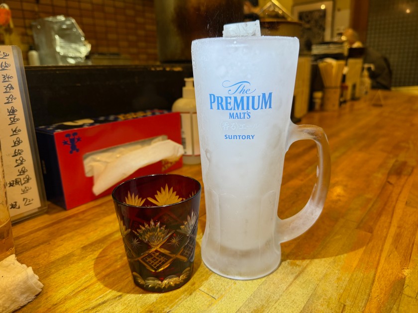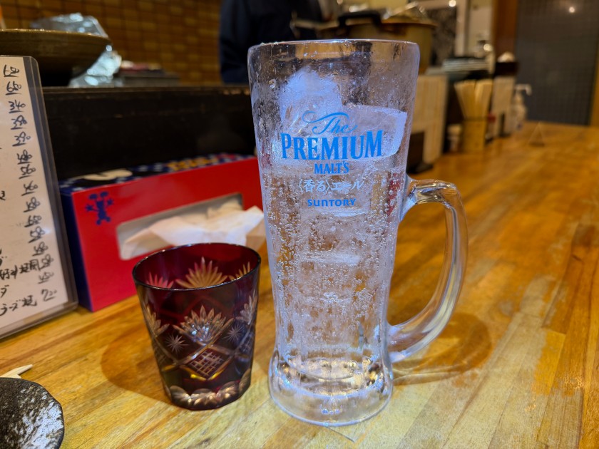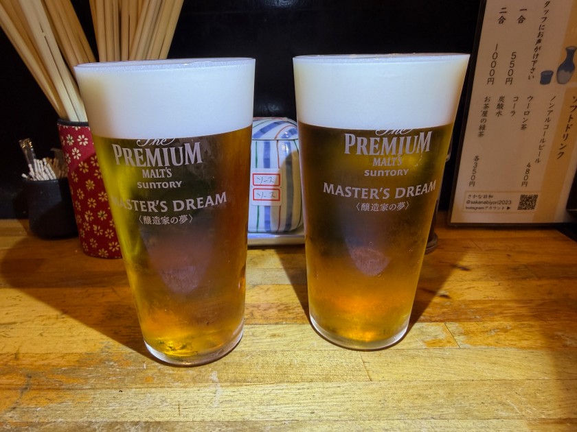 生ビールお願いします! 何人集まるかわからないからテーブルに座る。すぐツチダさんが到着し、こっちに座ろうと座敷に移動。