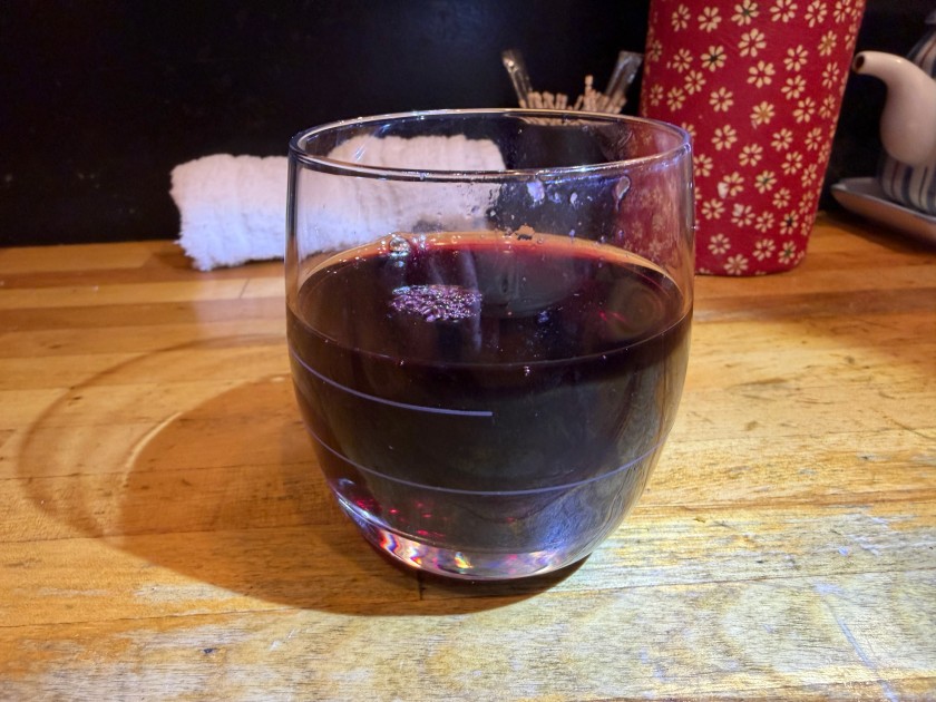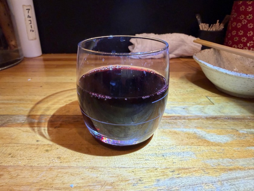 私は赤ワインと日本酒「他では飲めない日本酒の生樽サーバー」。