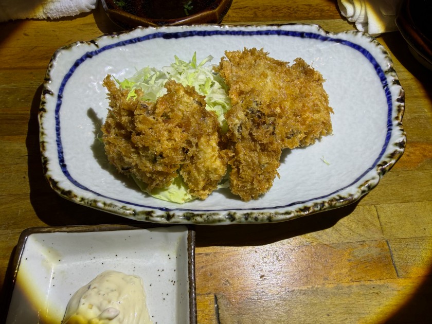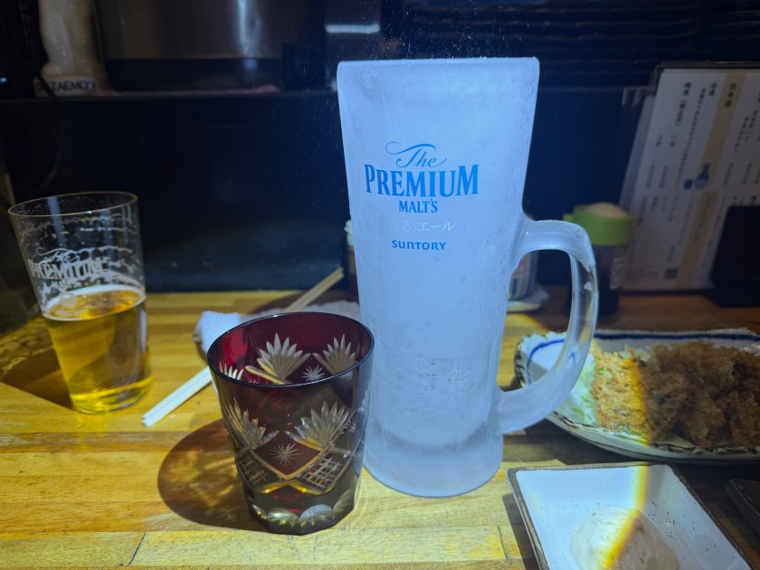 生ビールお願いします! 隣(の隣)に座ってるおじさんから声がかかる。「それさ(写真)どっかに載せるの?」と。「ハイ、ブログに」、「ブログねえ〜」、「それでさ、そのライト付けると良いの?」、ダンナが「全然、違うんですよ」と私のiPhoneの画面を見せる。「なるほどねぇ〜」って。「俺さ、前から見てたんだよ、やっと今日、聞けた」んだって。それはそれは。
