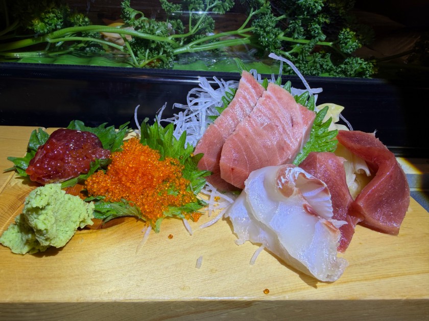 お刺身の盛合せ。今日は「つまみ あん肝」はないそうです。了解。