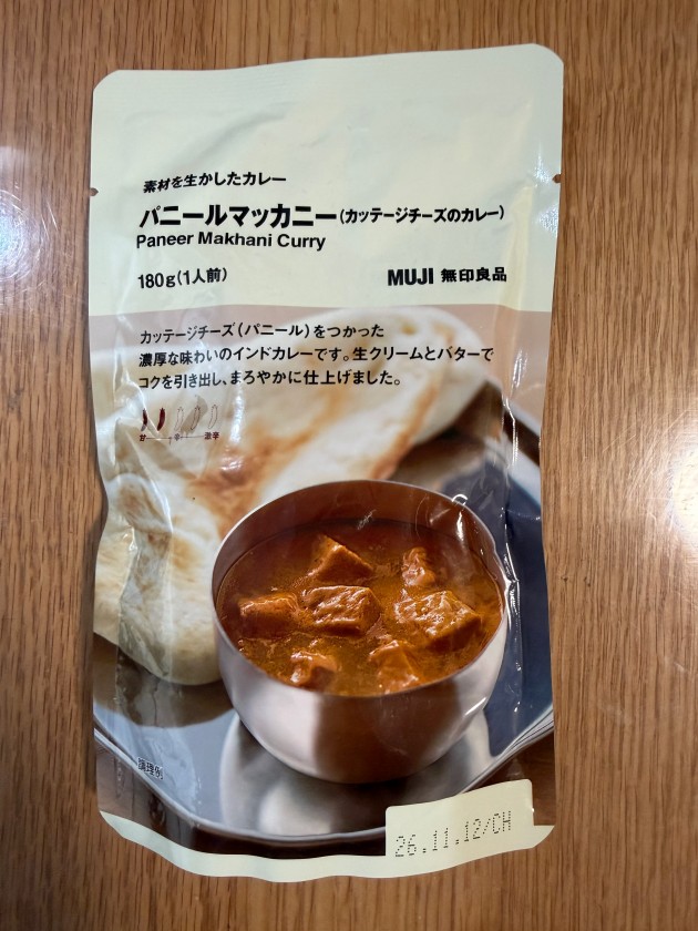 ランチは「無印良品」さんで買った「(素材を生かしたカレー)バニールマッカニー(カッテージチーズのカレー)」(2辛)。美味しいです!