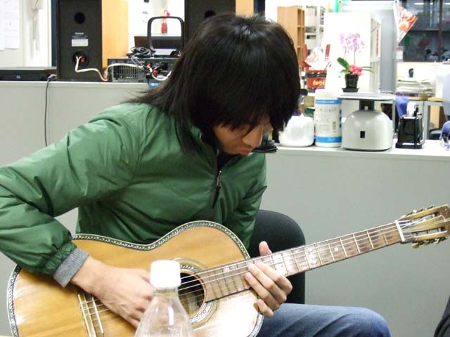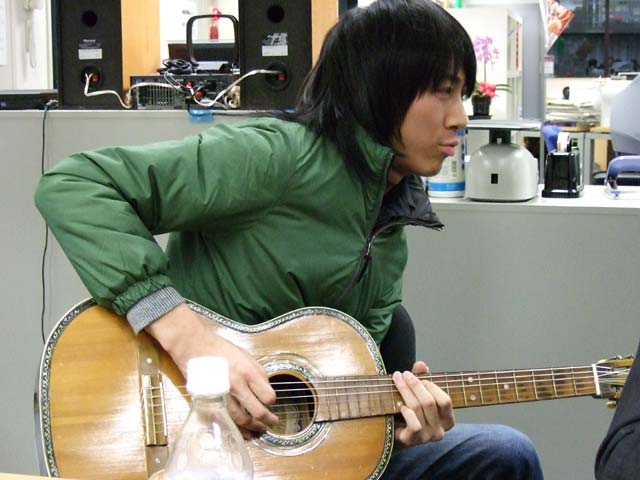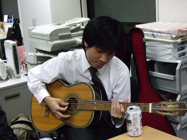 社員Meetingの後、社内で飲み食いをしている時に、先月、頂いたギターが大活躍。テレパスにはギター担当が多いので、奪い合い?w