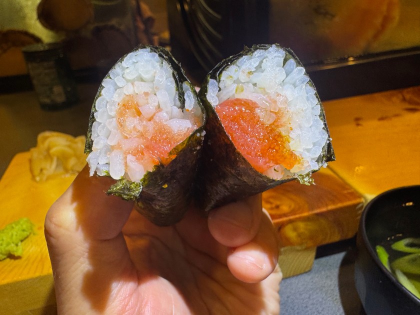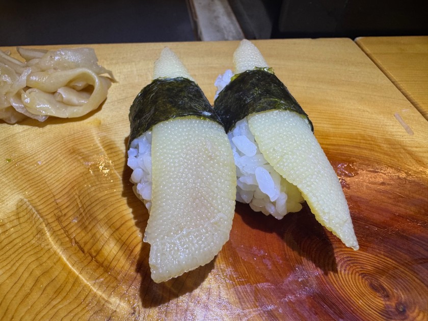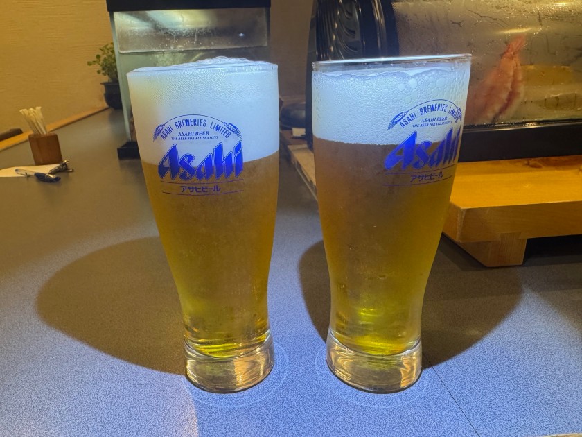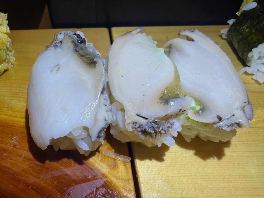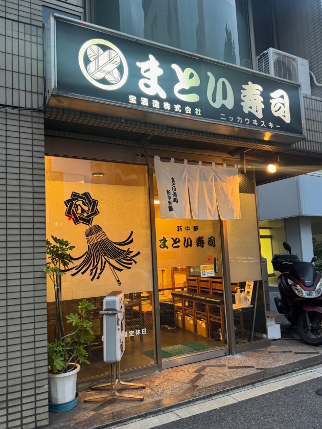 まとい寿司@新中野 「まとい寿司」さんに17時半で予約した。 生ビールお願いします! お刺身の盛合せ。 とろ(一人2貫)。 さんま。 ダンナのつぶ貝。 玉子焼。 ハイボール(濃いめ)お願いします! ダンナはウィスキーと炭酸水。 あわび(ダンナは2貫)。 数の子。 お吸い物を頂きました。美味しいです! ダンナの、ひらめ(昆布〆)。 ダンナの、かにみそ。 私の、いくら。 あなご。 明太巻(半分ずつ)。 ダンナの、かっぱ巻。美味しいです!