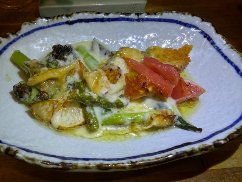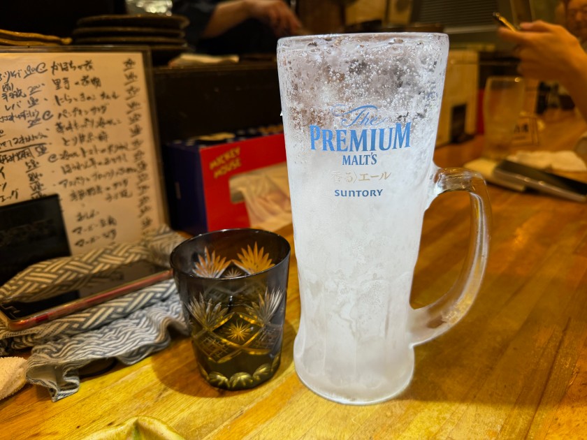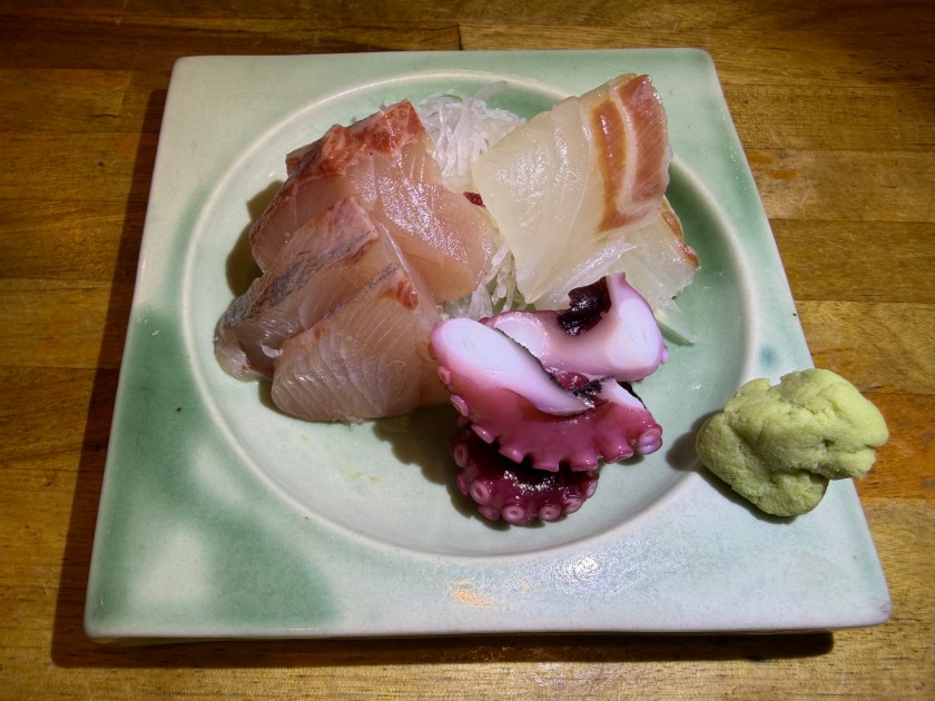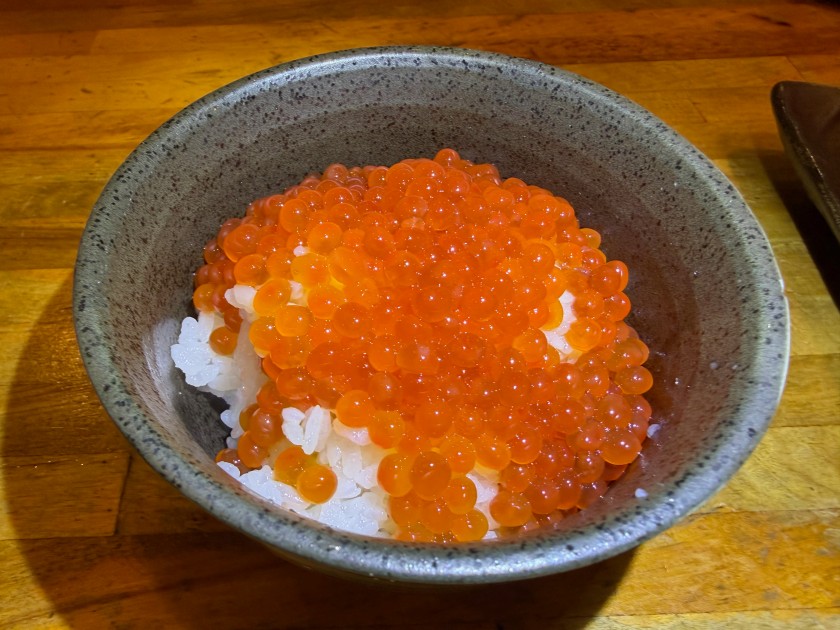 さかな日和@新中野 「さかな日和」さん。86度目。18時に予約した。わっ、満席! 生ビールお願いします! 今日のお花は「三度栗」。 お刺身の盛合せ(小)。 季節野菜のチーズ焼。 焼き鳥(ハツ、ささみゆずこしょう)。 私は赤ワインお願いします。 ダンナは宮城峡・シングルと炭酸水。 焼き鳥(ねぎま、手羽先)、写真は撮り忘れ。 お土産のミャクミャクを渡す。「行った人は初めて」だそうで喜んで頂いて嬉しいです! 赤ワインをお願いします! 締めは「いくらありますよ」と見せて頂き、いくら丼。美味しいです!