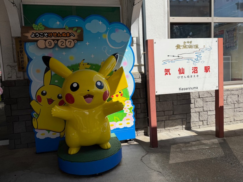 気仙沼に到着 明日「気仙沼ストリートライブフェスティバル」に出演するため気仙沼に帰る。 ピカチュー、ただいま〜! 気仙沼駅を振り返り見る。 「ようこそ気仙沼へ!」、ハイ、参りました! 気仙沼に到着するとテンション上がる〜!