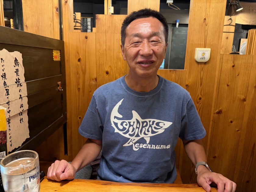 ダンナは気仙沼シャークスさんで買ったお土産Tシャツを気に入っております。うん、似合ってるよ!