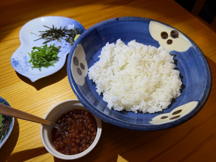 締めのお蕎麦は今日はないそうです。「いくら・あります」そうで、いくら丼にしましょう!