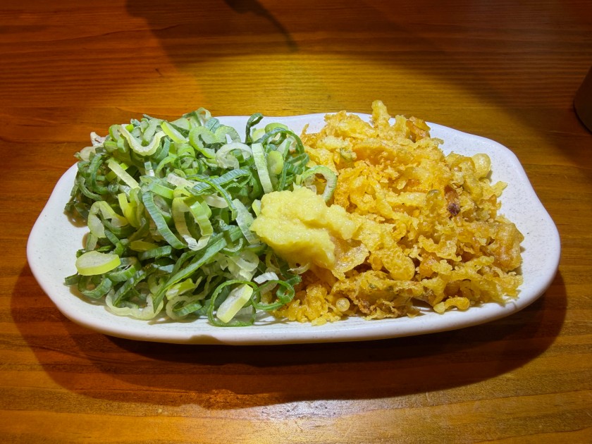 讃岐うどん よすが@新中野 「讃岐うどん よすが」さんでランチ。55度目。 薬味。 生ビール、一杯をシェア。 私は「4種のきのこみぞれあんかけ」の小盛、1,000円-100円。 ダンナは「4種のきのこみぞれあんかけ」の並盛、1,000円。美味しいです!
