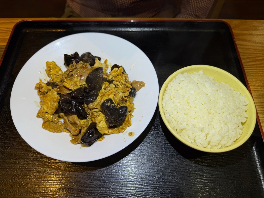 ダンナは「キクラゲ豚肉と卵の黒酢炒め定食」900円。