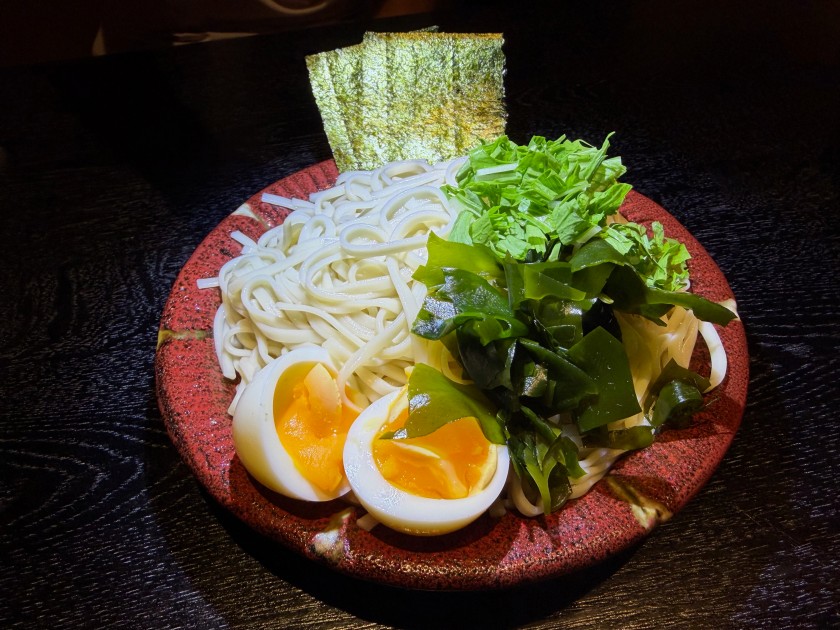 黒豚つけうどん麺大盛理! わっ、やっぱ大盛は多いね。2つ注文したけど、うち1つは普通盛りで良かったかな。