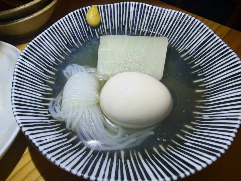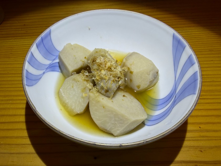 れすよし@新中野 「れすよし」さんに行きましょう。122度目。 生ビールお願いします! 肉みそピーマン。 さといものうま煮。 高知たけのこ刺。 おでん(大根、玉子、しらたき)。 角・ロックに炭酸水を少々お願いします! ダンナは角・シングルと炭酸水。 カツオの生姜鍋。旨い! 角・ロックに炭酸水を少々のお代わり。 ダンナは炭酸水(半分)をお代わり。 締めは、蕎麦。美味しいです!