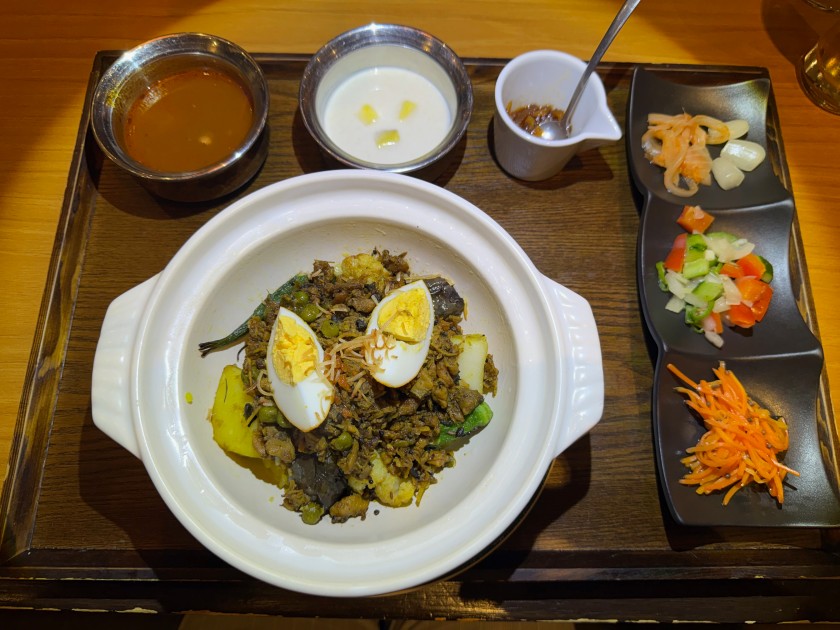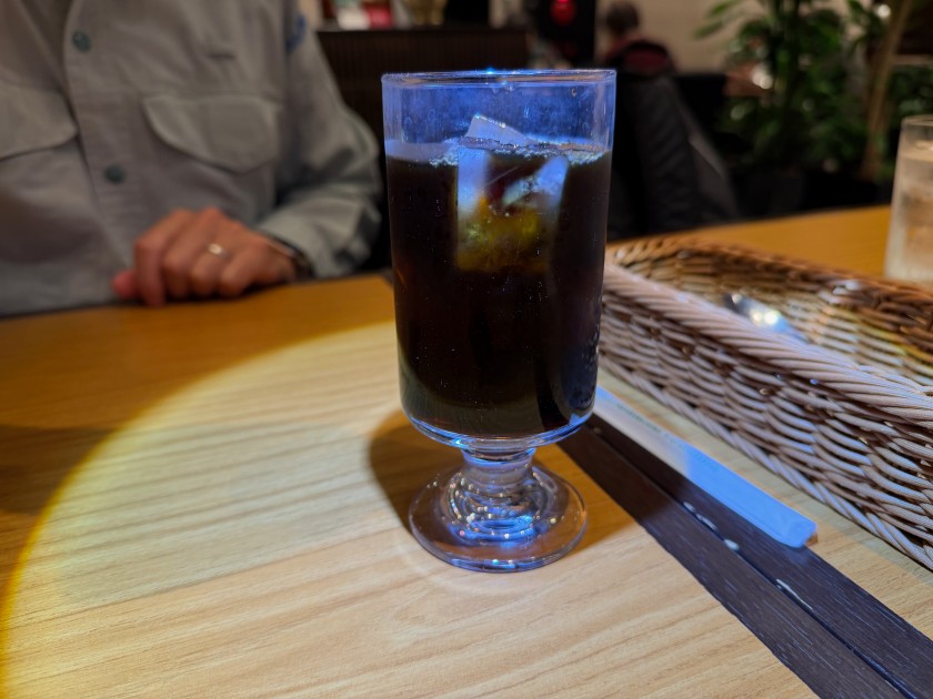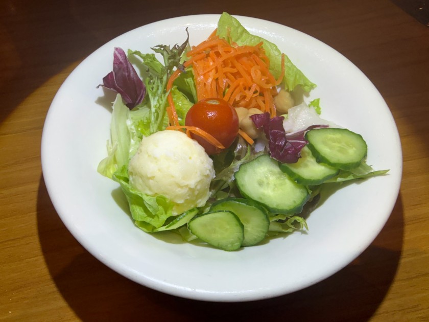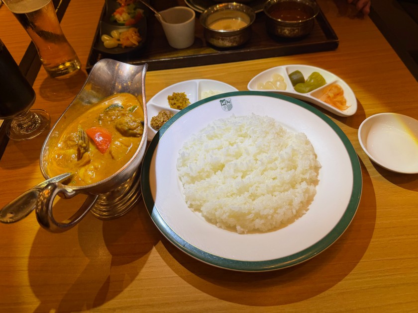 Manna@新宿中村屋 会社帰りにダンナと「Manna」さんで待ち合わせ。 生ビール(キリン一番搾り:Mサイズ)は1杯をシェア。 ダンナのセットについているアイスコーヒー。 ダンナのサラダ。「ドレッシンは別皿」と言うべきところを「ドレッシングなし」と言ってしまったらしい。そのまま食べる。 私は(季節限定)焼きドライカリー御膳。2,750円。 ダンナはシーフードカリー、サラダ・ドリンク付セット、3,355円。美味しいです!