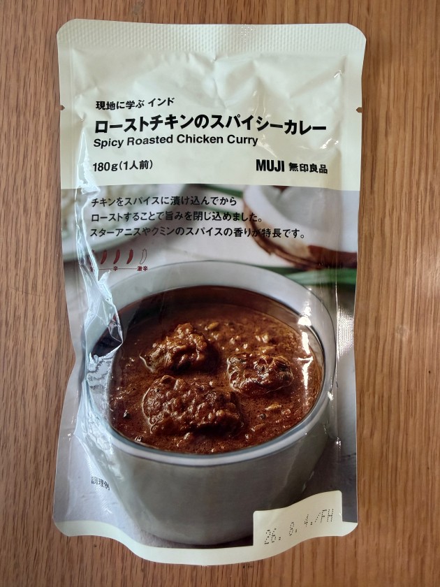 ランチは「無印良品」さんで買った「現地に学ぶ インド ローストチキンのスパイシーカレー」、「4辛」。辛いかな? と思ったけど大丈夫。美味しいです!