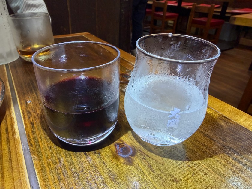 私は赤ワインと日本酒「他では飲めない日本酒の生樽サーバー」。