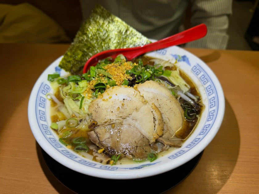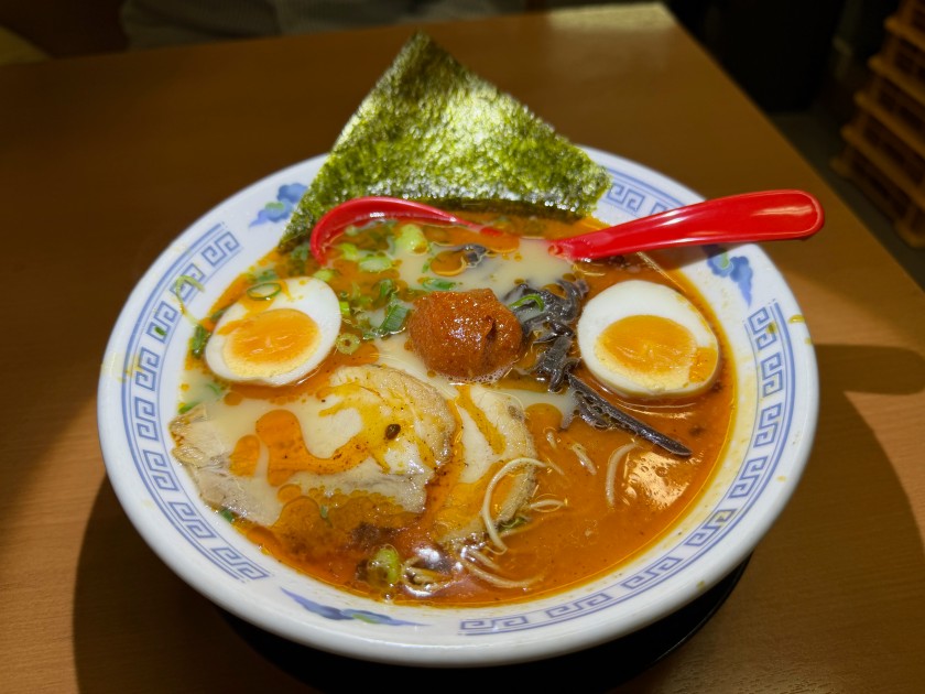 博多らーめん 一心堂@新中野 ランチは「博多らーめん 一心堂 新中野店」さん。 生ビールお願いします! 私は、「赤ラーメン」に無料券で玉子のトッピング。麺は半分で硬め。 ダンナは、「黒ラーメン」に野菜のトッピング、麺は硬め。美味しいです!