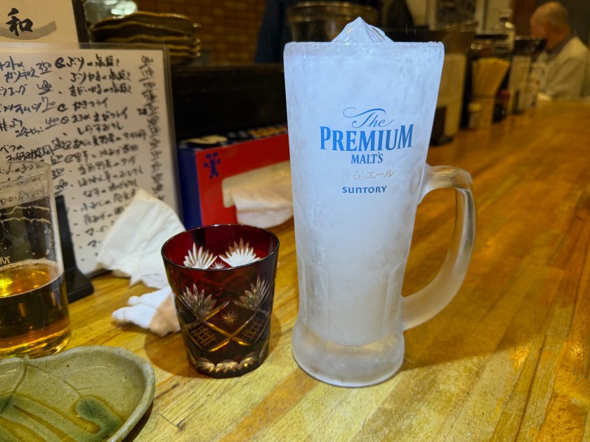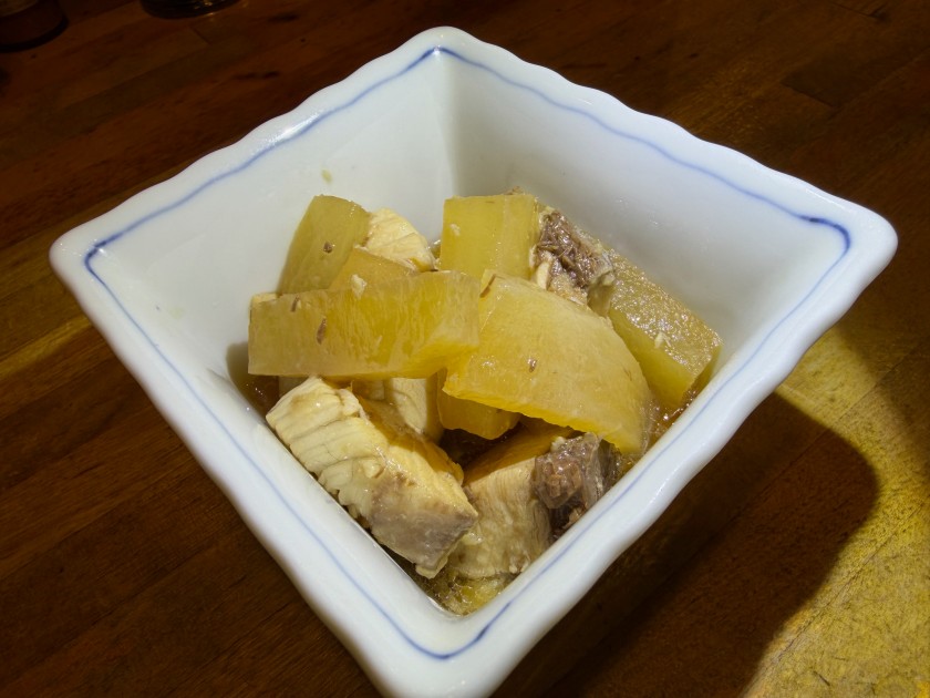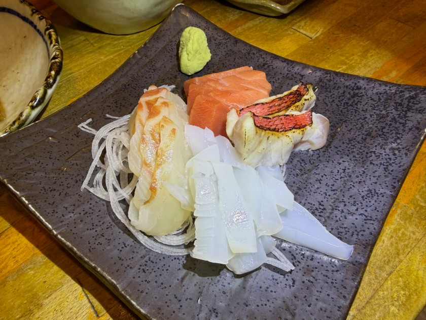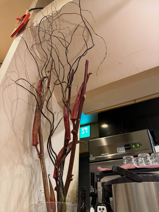 さかな日和@新中野 「さかな日和」さん。90度目。18時に予約した。 生ビールお願いします! 今日のお花は「おくら」。 里芋と油あげ煮物。 ぶり大根。 かきのバター炒め。 お刺身の盛合せ(小)。 赤ワインお願いします! ダンナは宮城峡・シングルと炭酸水。 赤ワインのお代わりお願いします! 待ってました! 味噌煮込みきしめん。美味しいです!