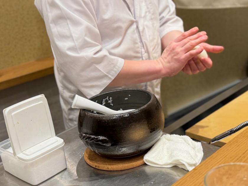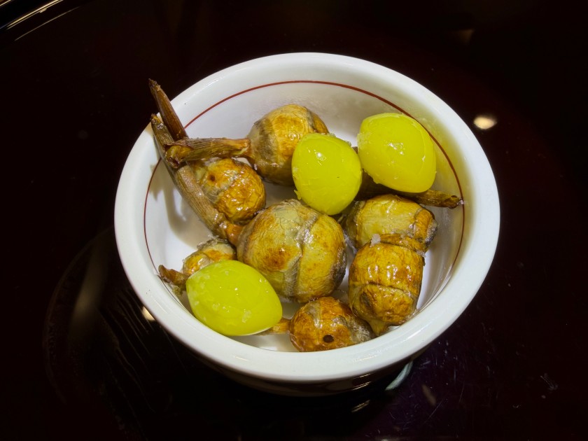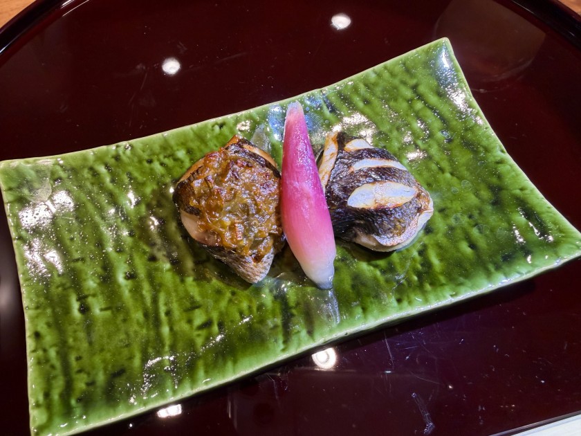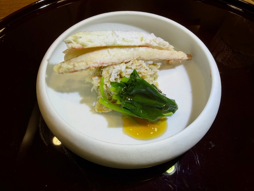 割烹 令月@新中野 「割烹 令月」さん。4度目。17時半で予約してある。オ、今日は今まで一番多い人数:5人だ。 生ビールお願いします! 花鯛、金時草、菊の花。 お刺身の盛合せ。北海道からのシロアマダイ、黒むつ、金目鯛。 陸・ハイボール(濃いめ)。 ダンナは富士・シングルと炭酸水。 タカベ(魚)。 ダンナは炭酸水のお代わり。 銀杏。 ダンナも陸・シングル。 ダンナは炭酸水のお代わり。 陸・ハイボール(濃いめ)のお代わり。 白鯛のおろし煮。 ダンナは炭酸水のお代わり。 蟹。旨い! 鶏肉、せり、豆腐。 日本酒を頂きます。辛口をお願いしました。新潟:淡麗酒・麒麟山(超辛口)。旨い。 ご飯が炊けました。 締めは、おにぎり。 お味噌汁。 デザート。 お茶。美味しいです! おにぎりのお土産を頂きました。ご馳走様です。とても美味しいです!