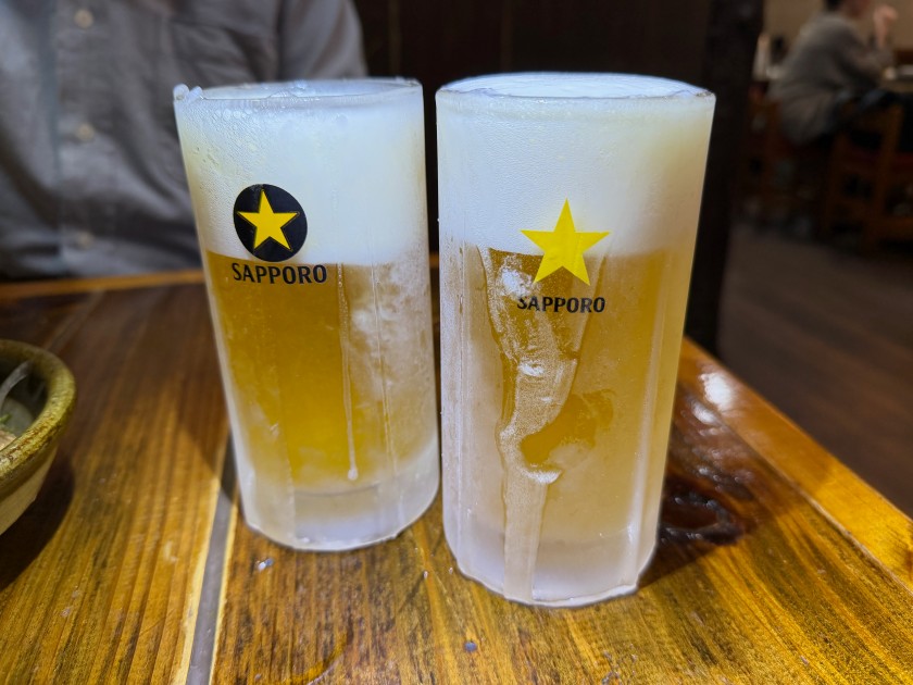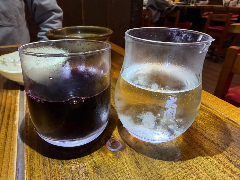 私は赤ワインと日本酒「他では飲めない日本酒の生樽サーバー」。