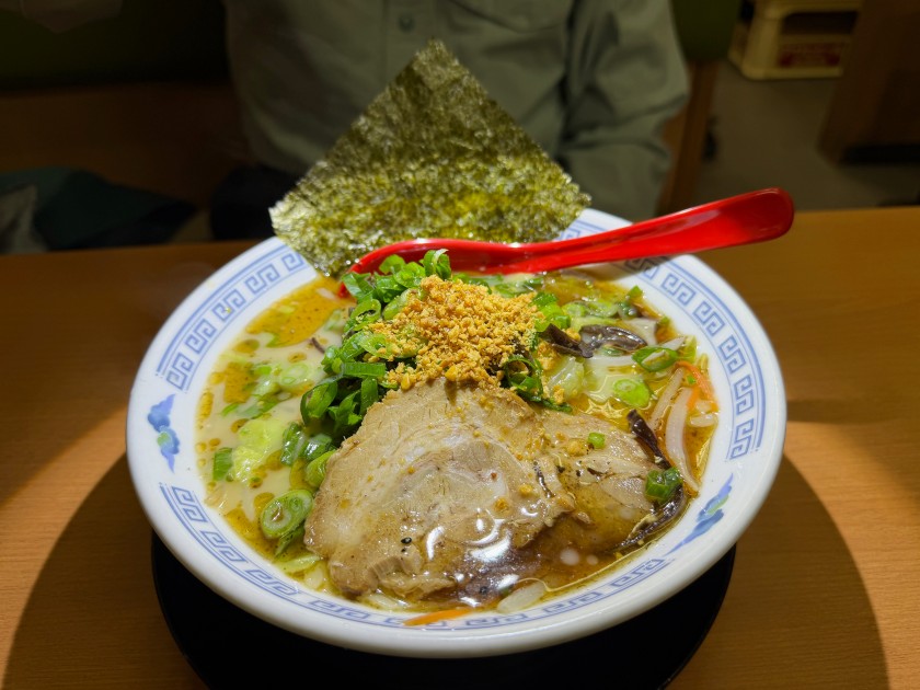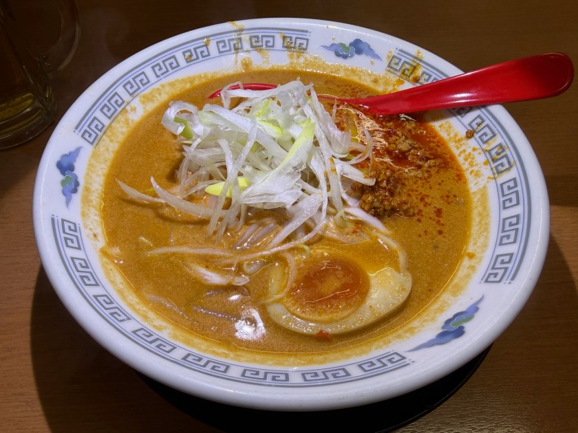 博多らーめん 一心堂@新中野 会社から帰って、ランチは「博多らーめん 一心堂 新中野店」さん。私も遅くなったがダンナはトラブルでもっと遅い。店内は空いていて、ゆっくり食べる。 生ビールお願いします! 初めて食べる担々麺、880円。麺は細麺を希望して半分に。美味しいです! ダンナは「黒ラーメン」に野菜のトッピング、麺は硬め。