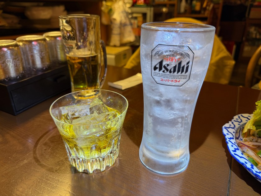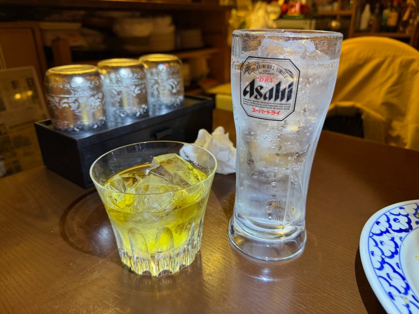 アイヤラー@新中野 ダンナとアイヤラーさんで待ち合わせ。 私はグァバハイ、ダンナは生ビールで乾杯! 生春巻。 春雨のサラダ。 私はウィスキー・ロック。ダンナは炭酸水。 シーフードと玉子のふんわりカレー炒め。 海老チャーハン。 ウィスキー・ロックと炭酸水のお代わり。美味しいです!