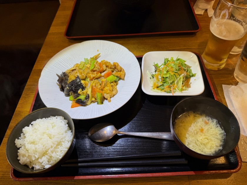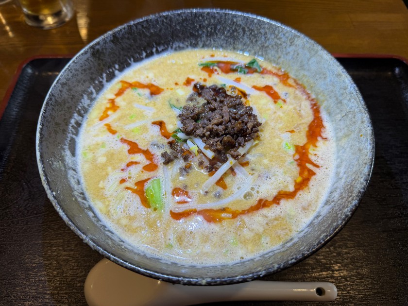 ゆずのたね@新中野 ランチは「ゆずのたね」さん。 生ビールお願いします。1杯をシェア。 私は担々麺、1,200円。麺は半分にして頂き、とても美味しいです! ダンナは豚肉とキクラゲの卵炒め、1,100円。