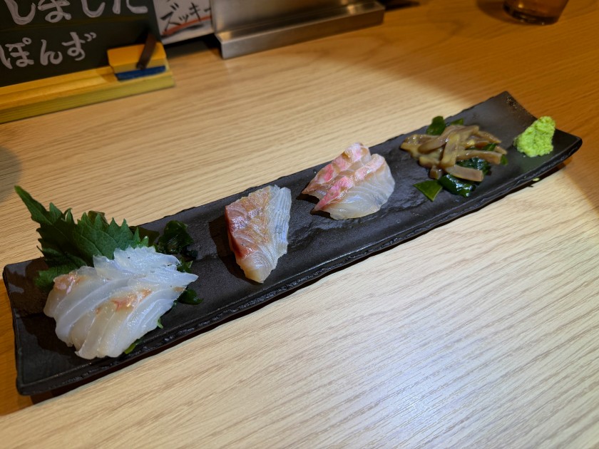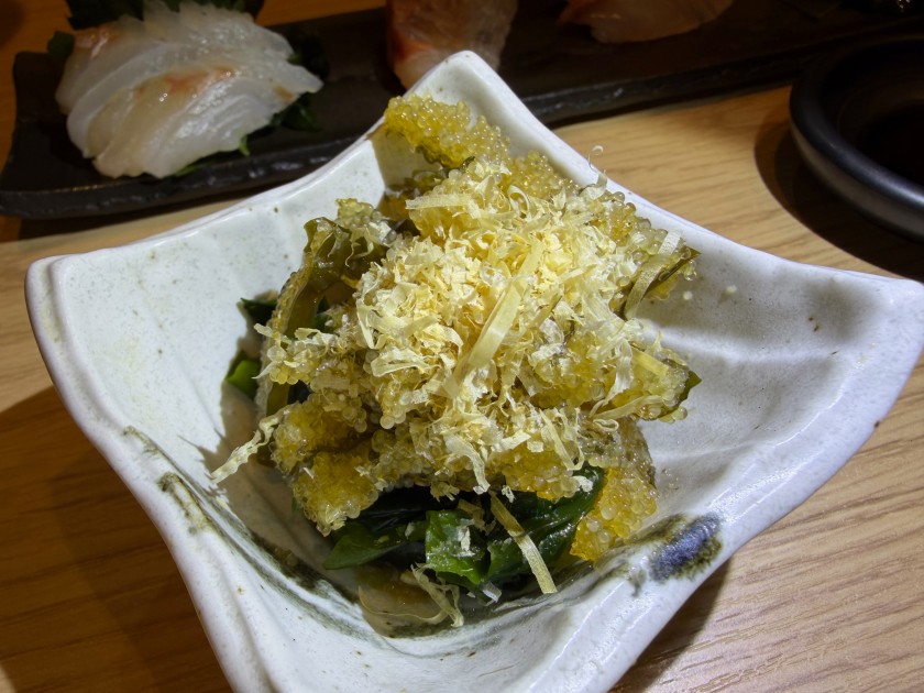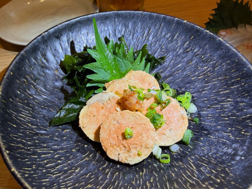 炉端と地鶏 橙 あいべ@新中野 「炉端と地鶏 橙 あいべ」さん、3度目。 生ビールお願いします! お通し。 子持ち昆布。 生湯葉のおひたし。 あん肝ポン酢。 炙り明太子。 ダンナは炭酸水。誤って2つ出たので「2つとも頂きます」と。 私は角・ロックにダンナの炭酸水を入れてもらう。 鶏白湯(とりぱいたん)ラーメン。 締めは、焼きおにぎり、いくら。美味しいです! 「1周年記念」があるそうで予約をして帰る。席はカウンターの、この席(端の席)が良いです!