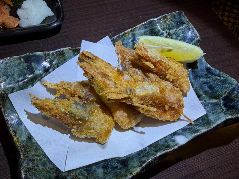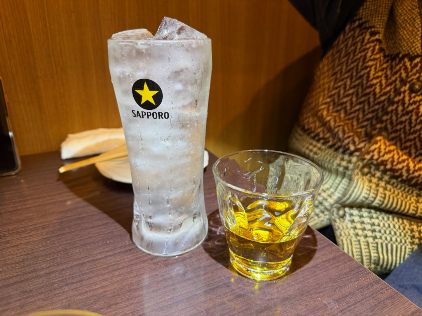 あじいち@新中野 「あじいち」さんに17時半で予約した。ダンナの「試験お疲れ様会」だ。 私は小生ビール、ダンナは生ビールお願いします! お通し。 炙り明太子。 甘エビ唐揚。 やきとん!!カシラ串(2本)。 私は角・ロックに炭酸水を少し。 ダンナはデュワーズ・ダブルと炭酸水。試験が終わったダンナは「ダブル」! 私は角・ロックに炭酸水を少しのお代わり。 自家製スープの、キムチ鍋。 ダンナは炭酸水のお代わり。 締めは、雑炊。美味しいです!