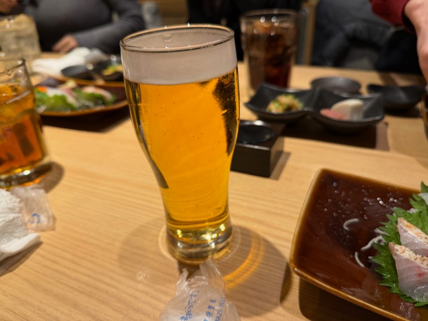 なんとか乾杯に間に合ったか。まだコートを着たままカンパーイ!