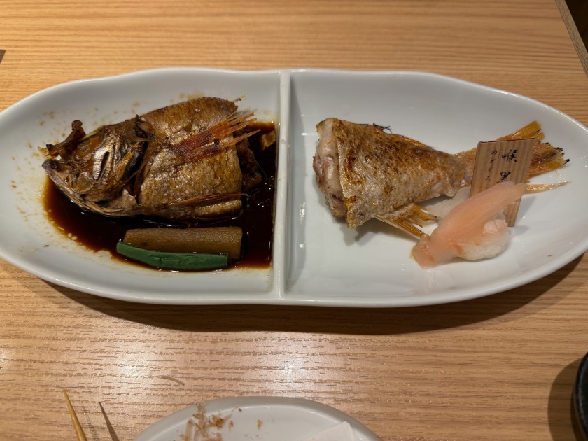 のどぐろ塩焼と煮付の姿合盛り。