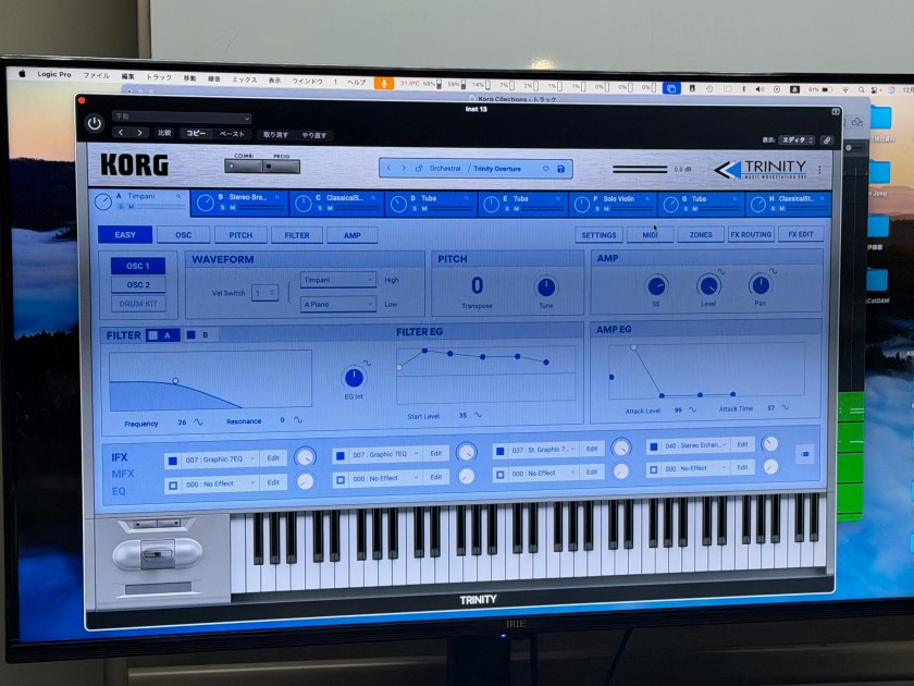 コバヤシさんはビックフライデーで「KORGの音源をアップデートした」そうです。持っている全ての音源に新たに3つ付いて16,000円でアップデート出来たと大満足。いくつかの音を聴かせて頂いた。クロノスのピアノ音源には、プリセットで「イタリアのピアノ」、「ドイツ・スタインウェイのピアノ」、「YAMAHAのピアノ」などたくさん良い音がある。