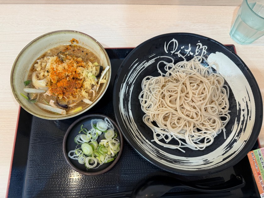 「肉茄子せいろ」、730円。麺を「半分に」して頂き、美味しいです!