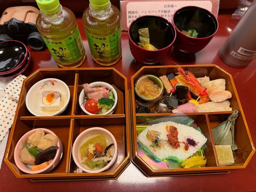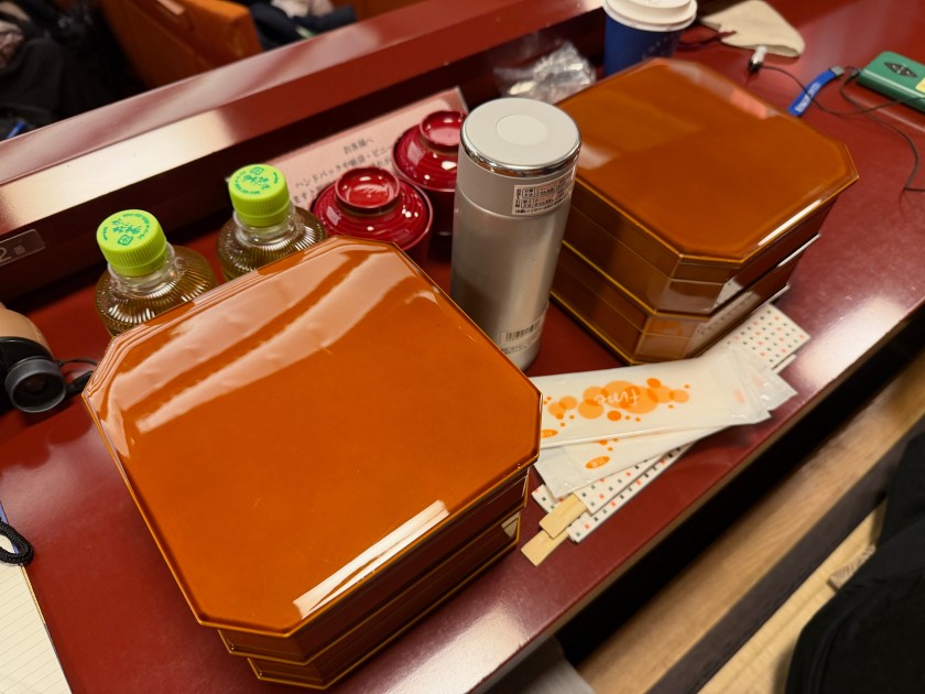 中に入れる時間が「5時45分」と表示されている。待つ。そして、やっと中へ。私は「桟敷席弁当」の支払いへ。ダンナはホットコーヒーを買ってきてもらう。