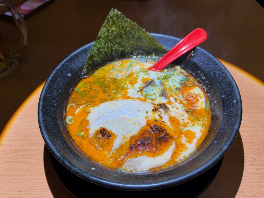 博多らーめん 一心堂@新中野 ランチは「博多らーめん 一心堂 新中野店」さん。 生ビールお願いします! 私は赤ラーメン、麺は半分で硬め。貯めたポイントで玉子のトッピング。 ダンナはいつもの「黒ラーメン」に野菜のトッピング、麺は硬め。美味しいです!