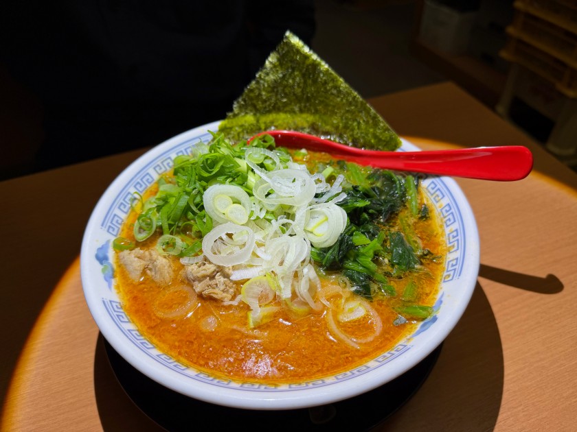 ダンナは珍しく別のメニューを。「ピリ辛味噌ネギラーメン」、麺はそのまま太麺。気に入ったそうで「次回もこれにしようかな」って。