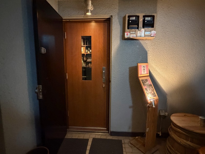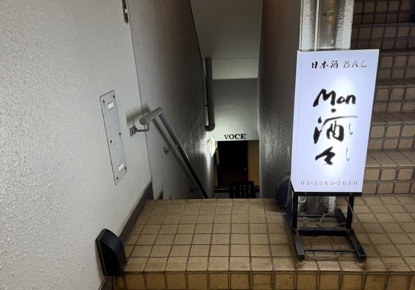 「日本酒バル モンシュシュ」さん、初めて入ります。この階段を降りた地下にお店がある。