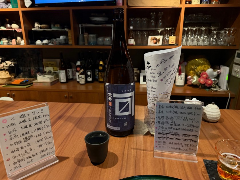 ビールはダンナにあげて熱燗を頂きます。新潟:本醸造・金升(かねます)、550円。