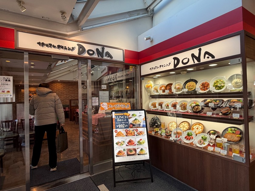「イタリアンダイニングDONA 中野坂上店」さんでランチ。11時7分、入店。待ちなし。