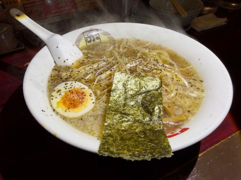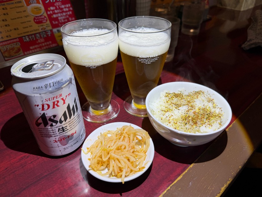赤坂屋@新中野 「赤坂屋」さんでランチ。11時35分、入店。一番乗り。 Asahiビールお願いします。 私はみそラーメン、麺は半分に。コーンのトッピング。 ダンナは、いつもの「スパイシー塩ネギの醤油味」。美味しいです!