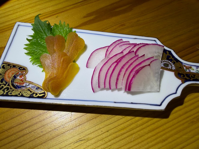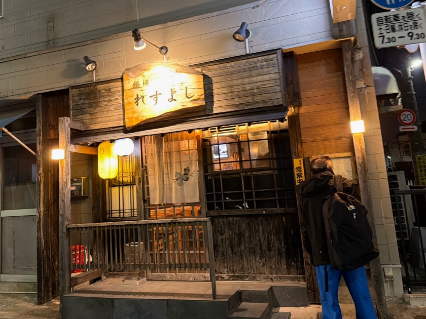 れすよし@新中野 「れすよし」さんに行きましょう。134度目。 生ビールお願いします! 肉みそ生ピーマン。 自家製からすみ大根。 フセ君登場! なんと今日は奥様のみさえさんの命日だって。もう11年も経ったって。時の流れは早いねぇ。献杯。 いかバター醤油炒め。 角・ロックに炭酸水を少々お願いします! ダンナは角・シングルと炭酸水。 ネギまぐろ小ナベ。 日本酒をお願いします。 千葉:純米・鳴海(なるか)直詰め、990円。 締めは、お蕎麦。1.5人前お願いします。美味しいです! 美味しいです! フセ君、お先に〜。