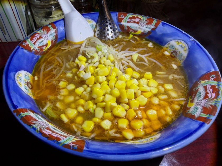 私は「うまから」、麺は半分に。コーンのトッピング。