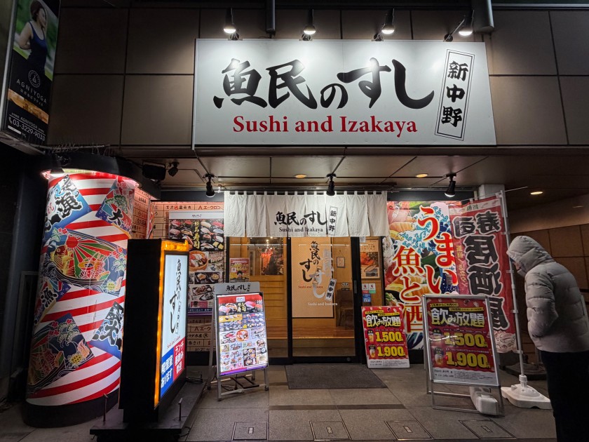 魚民のすし@新中野 前に「目利きの銀次」だったお店が「魚民のすし」さんになった。行ってみましょう。 生ビールお願いします! お通し(枝豆)。 めちゃうまねぎ。 お寿司をお願いしましょう。あっ、うにはない。いくら。 玉子焼。 ダンナの活〆真鯛と私のほたて。 ダンナは角・シングルと炭酸水。 私は角・ロック。あとでダンナの炭酸水を少し入れてもらう。 芳醇な極み 濃厚味噌 もつ鍋。 ダンナは炭酸水のお代わり。 私は角・ロックのお代わり。 もつ鍋 〆のラーメン。 iPhoneのカメラで読み取って注文するのだが、途中から電波が通らないか何かのトラブルで注文出来ず、店員さんを呼んで注文した。あと、お寿司に「うに」がないのは痛い。お寿司の握りも甘い。というか、これはマシンで作ってる? という感じで、まぁ、たまに来ましょうかという感想。残念。