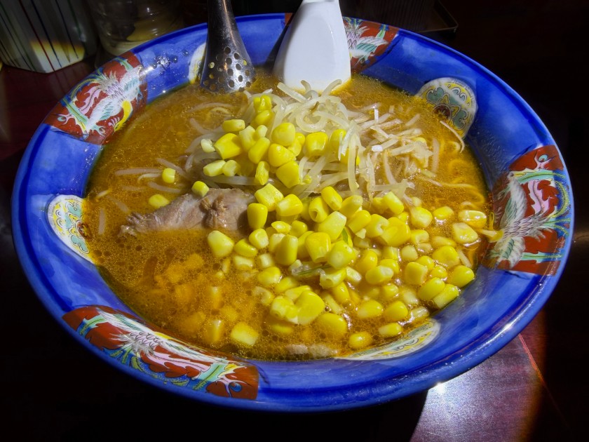 私は「うまから」、麺は半分に。コーンのトッピング。