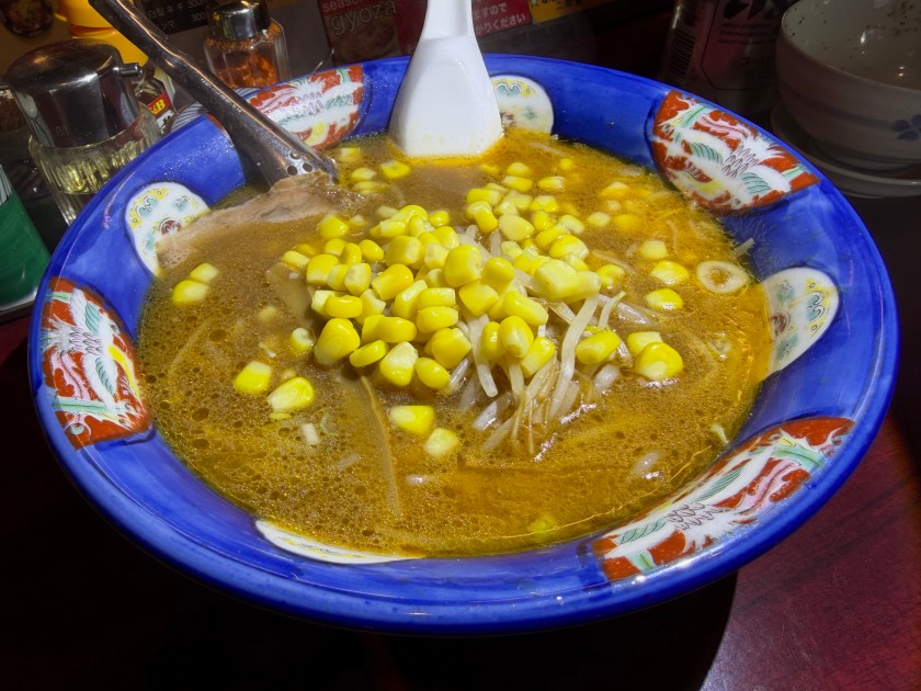 私は「うまから」、麺は半分に。コーンのトッピング。