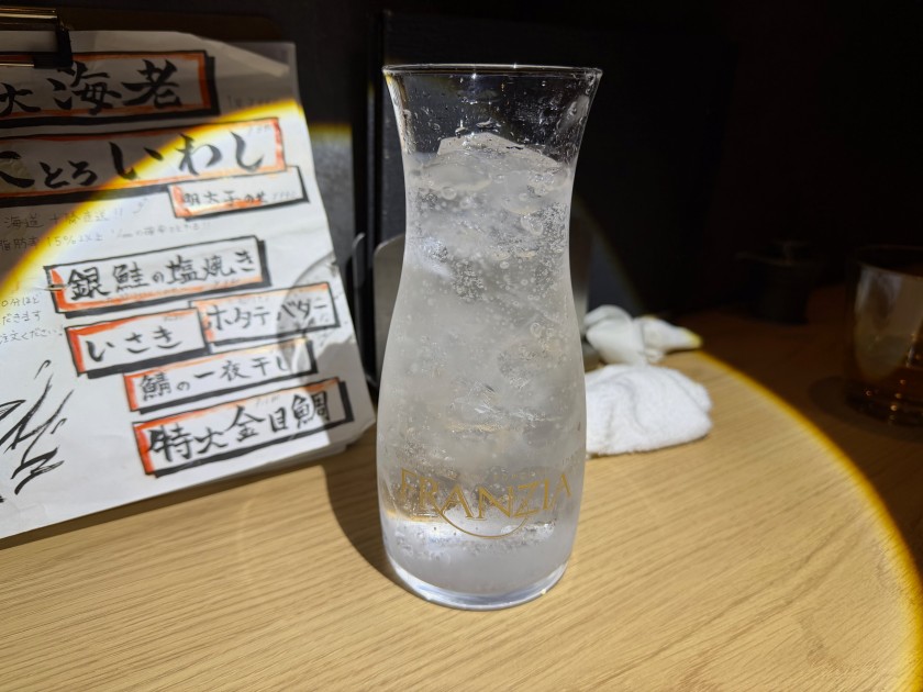 ダンナは炭酸水のお代わり。