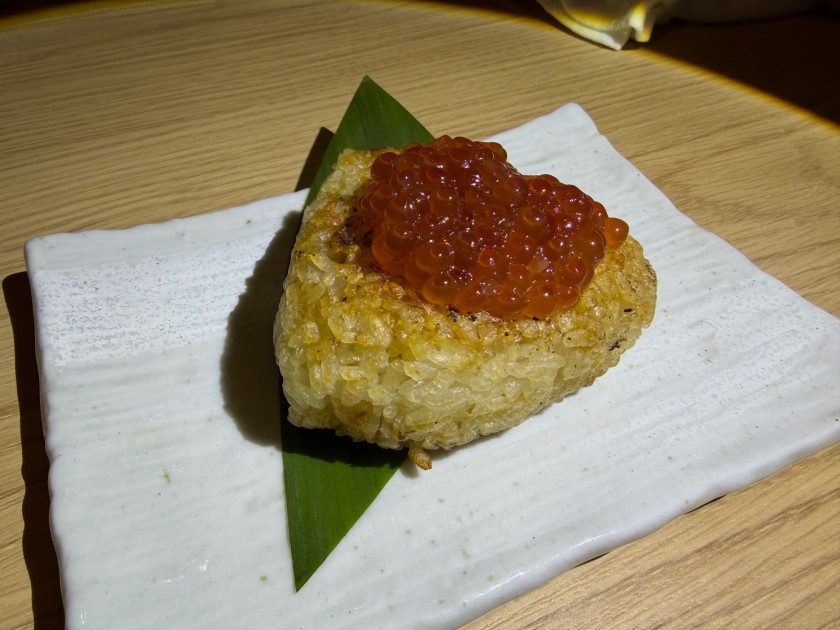 締めは、焼きおにぎり(いくら)。美味しいです!