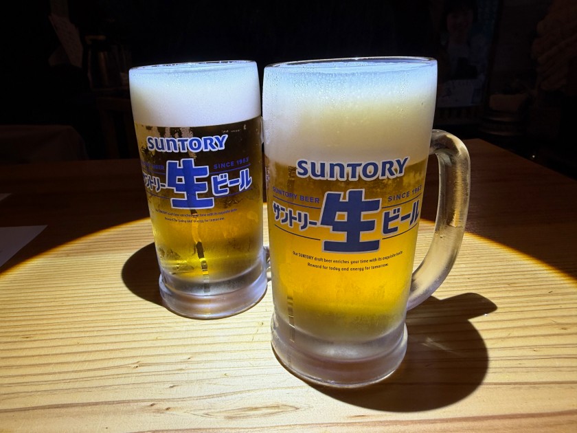 生ビールお願いします! 「オッ、フセ君、今日は早いね、私達も今、来たところ」。カンパーイ!