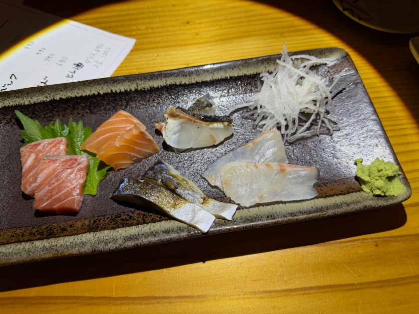 「これもメニューにないのですがイシダイありますよ」と勧めて頂き、お刺身でお願いします。「炙りイシダイ」と「炙ってないイシダイ」だ。